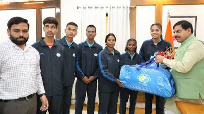 मुख्यमंत्री डॉ. यादव से मिले जर्मनी जाने वाले ग्राम विचारपुर के 5 फुटबॉल खिलाड़ी