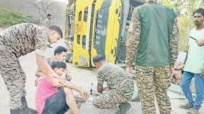 बड़ा हादसा: पुसपाल घाट में हाइवा दुर्घटनाग्रस्त, तीन घायल, CRPF ने दिखाई त्वरित मदद
