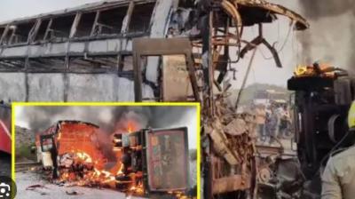 बस-ट्रक टकराने से आग, 13 लोग जिंदा जले; कई घायल