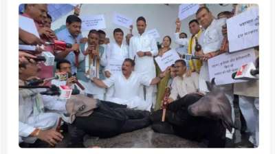 कांग्रेस ने विधानसभा में भैंस के सामने बीन बजाकर किया प्रदर्शन