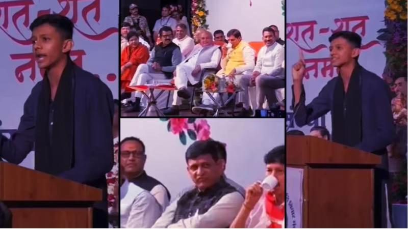इंदौर: देवी अहिल्या विश्वविद्यालय में आयोजित वाद-विवाद प्रतियोगिता के मंच पर उस समय सभी चौंक गए, जब इंदौर महापौर पुष्यमित्र भार्गव के बेटे संघमित्र भार्गव ने रेलवे की खामियों पर खुलकर निशाना साधा। मंच पर मुख्यमंत्री मोहन यादव और विधानसभा अध्यक्ष नरेंद्र सिंह तोमर मौजूद थे। संघमित्र के तीखे भाषण पर वे भी ठहाके लगाने से खुद को नहीं रोक पाए। इस दौरान बड़े नेता उसकी बातों को सुनकर भौंचक्क भी थे। वहीं, इंदौर मेयर के पसीने छूट रहे थे।