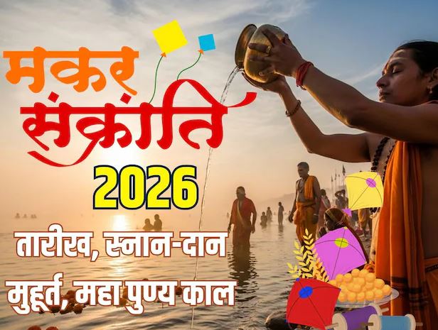 14 जनवरी 2026 को मकर संक्रांति का महा पुण्य काल 1 घंटा 45 मिनट का होगा. महा पुण्य काल का प्रारंभ दोपहर में 3 बजकर 13 मिनट पर होगा और यह शाम को 4 बजकर 58 मिनट तक रहेगा.