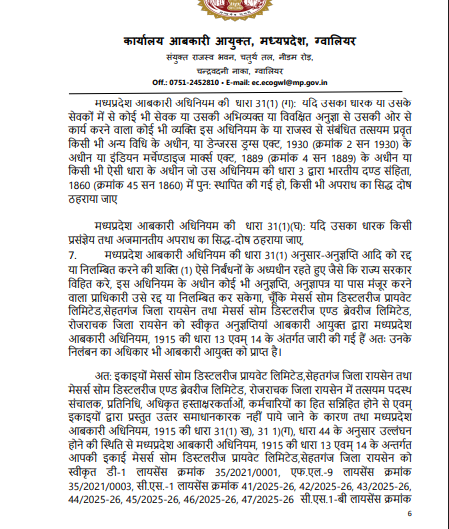 आबकारी आयुक्त ने अपने आदेश में कहा कि यह मामला—