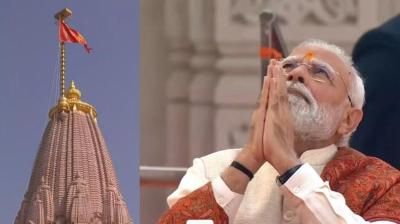 शुभ मुहूर्त में पीएम मोदी ने किया राम मंदिर शिखर पर ध्वज आरोहण