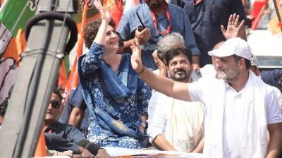 खुली जीप में सवार हो राहुल गांधी ने किया रोड शो