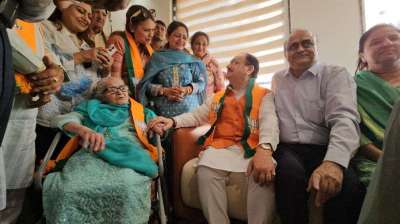 राष्ट्रीय अध्यक्ष जेपी नड्डा ने शकुंतला आर्य के घर के सामने भाजपा का झंडा फहराया