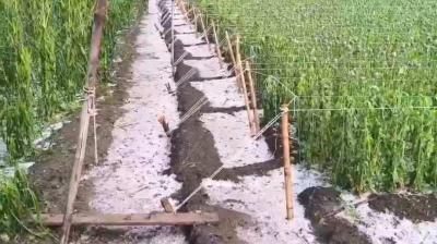 नीमच के खेतों में ओले गिरे, सफेद चादर बिछी, अफीम और अन्य फसलों की तबाही