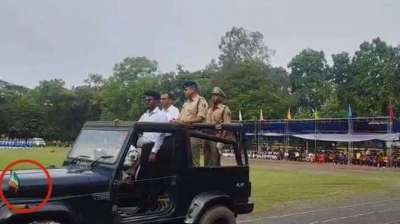 एसपी और कलेक्टर के सामने हुई गलती, गाड़ी में उल्टा लहराता रहा तिरंगा