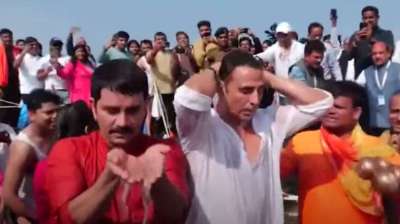 संगम में डुबकी लगाते हुए अक्षय कुमार ने की योगी सरकार की तारीफ